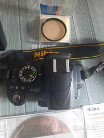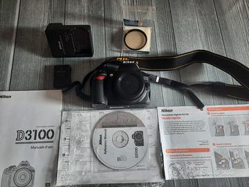 Vendo fotocamera digitale Nikon D3100 funzionante comprensiva di: corpo macchina tappo corpo cinghia Nikon batteria caricabatteria scatola originale manuale d'uso in formato cartaceo e digitale guida rapida Filtro Sky 55 mm