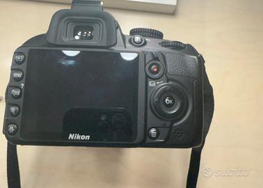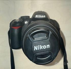 Fotocamera reflex digitale Nikon D3100, colore nero. - Obiettivo Nikkor DX 18-55mm 1:3.5-5.6 VR - Modalità di scatto: AUTO, GUIDE, P, S, A, M - Ghiera selettore modalità - Pulsante Info - Accensione ON/OFF
