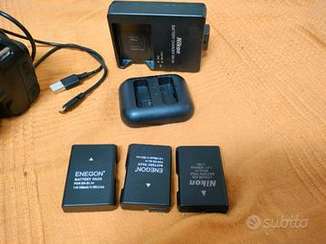 Nikon D3100 (ottima Entry level) Nikkor 18-105 (obiettivo originale nel kit) 3x batteria (batteria originale, e 2 batterie secondarie molto comode) 64GB SD