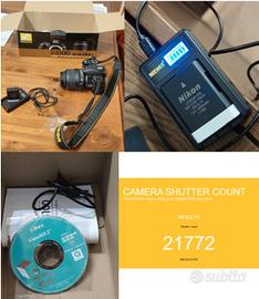 La fotocamera è perfettamente funzionante, ha 21772 scatti, segni d'usura come da foto allegate. Inclusa nel kit l’ottica Nikkor 18-55mm VR, versatile e stabilizzata, adatta a ritratti, paesaggi e foto quotidiane.