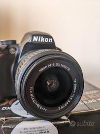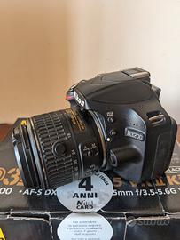 Nikon D3200 con obiettivo kit stabilizzato AF-S NIKKOR 18-35mm f/3.5-5.6G VR II -12150 scatti, acquistata nel 2013 da mediaworld -3 batterie di cui 2 non originali -tutti i cavi e accessori, libretto istruzioni della confezione originale -filtro uv e nuovo cinturino in omaggio -vetro obiettivo in perfette condizioni senza graffi -vetro display perfettamente integro -leggerissimo rumore meccanico quando si mette a fuoco -scheda sd non inclusa