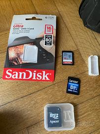 la cinghia, la batteria, il caribatterie MH-24, cavo usb, cavo audio-video, tappo corpo, copriobiettivo, CD-Rom del software, due SD card, la scatola originale e una borsa (vedi l’interno nell’ultima foto).
