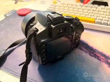 Nikon d3200 in buone condizioni, non ha danni estetici, la pelle è ancora solida e pulita, non ha graffi se non per una piccola striscia sul display ma durante l’utilizzo risulta impercettibile