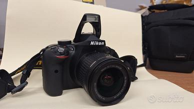 Nikon 3300D Kit + Scatola originale + Borsa La macchina è stata usata pochissimo, ideale per neofiti. Provvista di scatola originale e tutti gli accessori originali del kit. batterie sempre rimosse dopo gli scatti.