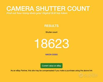 Nikon D3300 con 18623 scatti (piccolo difetto su oculare smontabile, pezzo sostituibile con 10 euro e ininfluente ai fini del funzionamento)