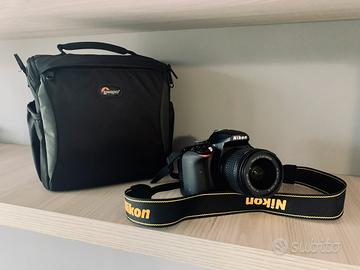 Nikon D3400 con obiettivo 18-55mm viene venduta assieme a Borsa con tracolla Lowepro che consente un trasporto comodo e sicuro della camera e dei suoi componenti.