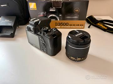 Vendo Nikon D3500 praticamente nuova, utilizzata pochissimo e sempre tenuta con la massima cura. Nessun graffio o difetto, pari al nuovo. Perfetta per chi vuole iniziare con la fotografia o cerca una reflex semplice ma di qualità. Incluso nel prezzo: •Corpo Nikon D3500 •Obiettivo Nikkor 18-55mm •Batteria originale •Caricabatterie originale •Cinghia Nikon •Tappo obiettivo •Borsa per trasporto •Scatola originale e manuali Caratteristiche principali: •Sensore da 24.2 MP •Ottima qualità fotografica •Facile da usare, ideale per principianti Prezzo: 270€ trattabili Consegna: a mano oppure spedizione Vendo per inutilizzo. Per info o altre foto contattatemi 🙂