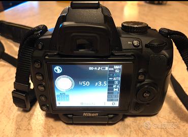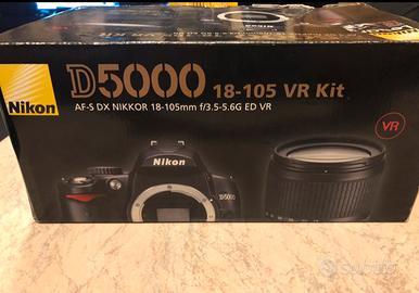 Nikon D5000 + obiettivo Nikkor VR 18-105 ottime condizioni, caricabatterie, 2 batterie originali, cavetti, scatola, borsa tracolla Reporter vendo €400 contanti no spedizioni