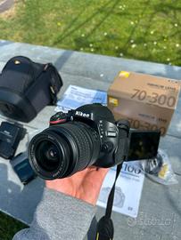 Vendo per inutilizzo Reflex Nikon D5100 usata pochissimo con 3600 scatti totali. Batteria nuova mai usata, 2 obiettivi, un 18 - 55 mm e un obiettivo 70 - 300 nuovo mai usato e valigetta porta macchina fotografica. Non vendo pezzi separatamente.