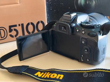 Vendo splendida reflex Nikon D5100 + Obiettivo Nikkor 18-105mm VR + Telecomando a filo Nikon MC-DC2 tutto in condizioni estetiche e funzionali eccellenti, usata con estrema cura. Ideale sia per chi vuole iniziare a fotografare seriamente, sia per appassionati che cercano un corpo macchina affidabile con schermo orientabile. >>>> Solo 8.749 scatti certificati da Camera Shutter Count (meno dell'8% della vita utile dell'otturatore), macchina usata pochissimo e in condizioni pari al nuovo. Il kit include, come da foto: - Corpo Macchina Nikon D5100 (sensore CMOS da 16.2 MP) - Obiettivo AF-S DX Nikkor 18-105mm f/3.5-5.6G ED VR: un'ottica tuttofare stabilizzata, molto superiore al kit base, perfetta dai panorami ai ritratti. - Paraluce originale Nikon HB-32 - Batteria originale Nikon EN-EL14 - Caricabatterie originale Nikon MH-24 - Telecomando a filo Nikon MC-DC2 (fondamentale per lunghe esposizioni o foto di gruppo senza vibrazioni) - Tappi protettivi (corpo e obiettivo) - Tracolla originale Nikon - Scatole originali integre - Manuale d'uso cartaceo e documentazione originale. Stato del prodotto: Lenti pulite, senza graffi o muffe. Contatti obiettivo pulitissimi e lucidi, no ossidazione né graffi. Specchio e vano sensore immacolati. Corpo macchina senza segni di usura evidenti. Schermo LCD perfetto e snodo fluido. Sempre conservata in borsa fotografica.
