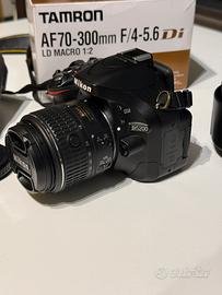 Nikon D5200 – condizioni eccellenti Shutter count: 6333 Reflex sempre utilizzata con attenzione e conservata in modo impeccabile. Accessori inclusi: - Batteria originale - Caricatore - Laccetto - Copertura otturatore - Borsa da trasporto Ottiche: - Nikkor DX VR 18-55mm - Tamron AF 70-300mm f/4-5.6 Tele-Macro (1:2)