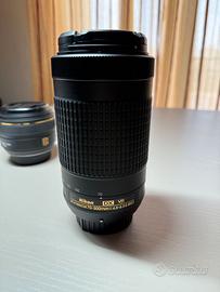 - Obiettivo Nikon AF-P Nikkor 70-300mm f/4.5-6.3 ED DX VR: ideale per foto naturalistiche e sportive, stabilizzato.