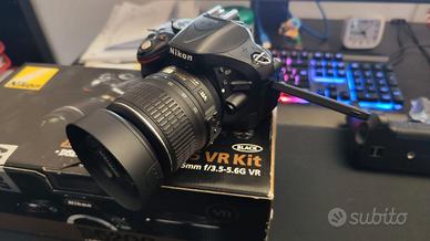 Nikon D5200 AF-S DX NIKKOR 18-55mm f/3.5-5.6G VR + tre batterie (due originali) + power grip Andoer + Carica batterie originale + Filtro neutro proteggi obbiettivo Completo di scatola e custodia obbiettivo originale Numero scatti: 64000 Preferibilmente consegna a mano zona Veneto (per eventuale prova macchina) Prezzo leggermente trattabile