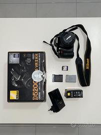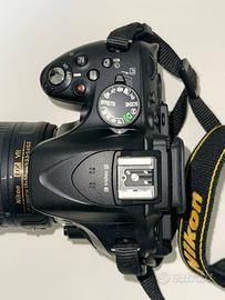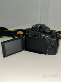 Fotocamera reflex Nikon D5200 completa del suo obiettivo kit 18-55mm stabilizzato. Macchina del 2013 dotata di sensore da 24.1 megapixel e comodo schermo orientabile. Macchina perfettamente funzionante in ogni sua parte. Lente come nuova, pulita, meccanica fluida e senza graffi. Include 2 batterie originali, caricabatterie, tracolla e tappi (+ SD da 8 GB)