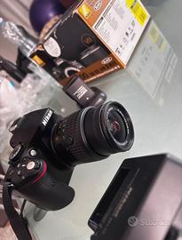 Vendo macchina fotografica perfettamente funzionante, con custodia, e obbiettivo af-s dx e 18-55mm f/3.5-5.6G VR II 18-55mm fornito nella confezione originale. Prezzo trattabile Condizioni in ottimo stato. La macchina e il suo obbiettivo funzionano perfettamente e sono stati trattati sempre con cura, come si può vedere in foto. Presenta solamente un difetto puramente estetico, ovvero si è rotto lo sportello per lo slot della microsd risultando cosí sempre visibile. Non compromettendone il funzionamento. Purtroppo non ho piú: Cavo Audio-video Manuali d’uso Sono inclusi oltre alla macchina fotografica e il suo obbiettivo: - scatola originale con qualche difetto estetico. - batteria e suo caricatore originali. - il cavo usb data originale. - 2 batterie aggiuntive con base di ricarica (due alla volta con microusb). - Un cavo minihdmi - HDMI (per colmare la mancanza del cavo audio video) - borsa porta macchina fotografica, con tracolla e tasche interne per le microsd. - Una microsd sandisk ultra con 64GB. - Un lettore usb (di tipo A, microusb e usb c) di micro sd e sd. (Per poter spostare le foto, anche sul telefono.)