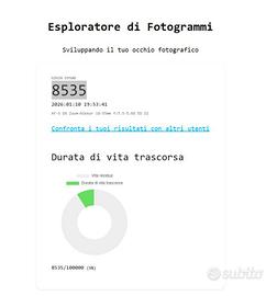 La fotocamera è sempre stata utilizzata con cura ed è perfettamente funzionante. Il numero di scatti è verificabile e documentabile (circa 8.535, pari a circa 9% della vita stimata dell’otturatore).