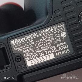 Nikon D5500 acquistata per errore. In eccellenti condizioni. La macchina è in garanzia MPB fino al 27/02/2026. Numero scatti 1346. Vengono forniti anche: batteria originale Nikon, caricabatteria Nikon da parete, cinghia Nikon.