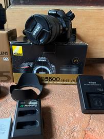 Vendo fantastica Nikon D5600 per passaggio a Full Frame. Usata pochissimo. Corredata della lente di serie 18-55mm + Nikkor 35mm 1.8 diaframma (fantastico pee street photography) e Nikkor 24-120mm 3.5-5.6 diaframma (stabilizzato VR). Macchina fantastica per scattare come per girare video, corredata di schermo mobile che si può ruotare. Insieme vendo anche paraluce, 3 batterie in totale + 2 caricabatterie. Solo le due lenti Nikkor nuove costano 700€.