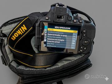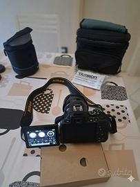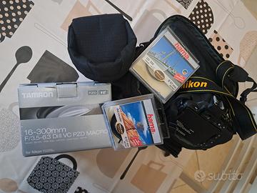 Vendo Nikon D5600 (usata pochissimo) + obiettivo Tamron 16-300mm F3.5-6.3 Nikon D5600: - Ottime condizioni (con touchscreen orientabile) (Connessione a dispositivi smart e Bluetooth) - Custodia - Telecomando per lo scatto (con cavo) - 2 batterie - Caricabatterie Obiettivo Tamron: - Buone condizioni - Filtro UV Hama 390 - Filtro polarizzatore circolare Hama - Custodia per obiettivo