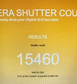 vendo Nikon d60 con obiettivo originale nikkor 18-55 completo di batteria e caricabatteria scheda SD in omaggio .Numero di scatti 15460