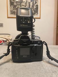 Macchinetta fotografica analogica, con annessi flash anulare e flash speedlite. Prodotto ancora in ottime condizioni.