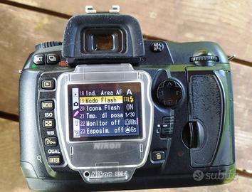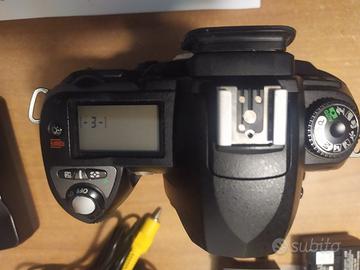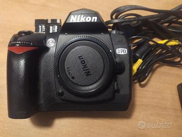 Reflex semi pro Nikon D70 APS-C con sensore ccd da 6.0 megapixels, motore autofocus interno, doppia ghiera, doppio display, syncro flash 1/500, velocità max di 1/8000, corpo robusto.
