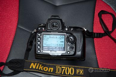 Vendo Nikon D700 full frame in ottime condizioni , con circa 47.000 scatti. Fotocamera professionale robusta e affidabile, Sempre tenuta con cura, perfettamente funzionante in ogni sua parte. Incluso nel prezzo: Corpo macchina Nikon D700 Tracolla originale Nikon Scatola originale Carica batterie 2 batterie Impugnatura verticale (battery grip MB-D10) 2 batterie maggiorate per grip con carica batteria (per raggiungere raffiche fino a circa 8–9 fps al secondo). 4 schede Compact Flash (16 GB + 8 GB + 8 GB + 4 GB) Vendo per passaggio a mirrorless. Consegna a mano con possibilità di prova. NON SPEDISCO.