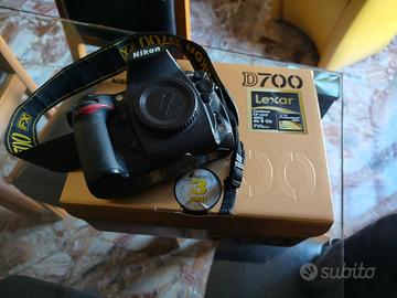 Vendo causa passaggio a Nikon D750, macchina fotografica D700 (23200 scatti) completa di: •Coperchio frontale •Scatola Nital •Tracolla originale •Batteria originale •Carica batteria Nital •1 memoria CF da 2 GB (usata) •2 memorie CF da 16 GB (nuove) •Manuale in italiano Nital •Pulsante esterno per scattare foto marca OTB modello RS 3004