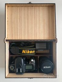 Nikon D80 CCD corredo completo con cofanetto artigianale unico nel suo genere, da esposizione, fatto a mano in legno con chiusura e foderato con una bordatura in ecopelle per dare un tocco vintage ed eleganza nonché protezione al prezioso contenuto. Comincia subito la tua avventura fotografica: * Corpo: Bellissima Nikon D80 con l’ultimo sensore CCD montato da Nikon, questo sensore ha reso questo modello iconico tra gli appassionati, una una resa dei contrasti e dei colori molto belli, simile alla pellicola, fotocamera semi-professionale dotata di due display, uno per il controllo dei parametri e l’altro per i menu e per vedere le foto scattate, doppia ghiera per i tempi e diaframmi, possibilità di montare tutte le ottiche nikon AF perché ha il motore dell’autofocus integrato, fotocamera praticamente nuova, solo 38389 scatti circa, ha solo qualche segno di normale usura. * Obiettivo: per sottolineare lo stile vintage del sensore è stato accoppiato da un 28-80 f3.5-5.6, tutto fare, dal paesaggio al ritratto grazie agli 80mm di focale, perfetto senza graffi o problemi. * Accessori inclusi: per terminare il corredo, viene fornita oltre alla cinghia a tracolla lavata, una SD da 16gb classe 10, la protezione per il display, la gomma del oculare nuova appena sostituita e ovviamente batteria Patona (in ottimo stato) e caricabatterie rapido Patona . Potete venire a Casalserugo PD a provarla di persona o posso spedire con tuttosubito.