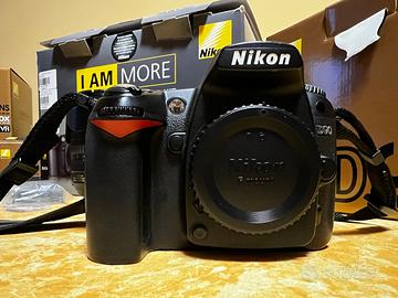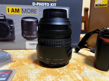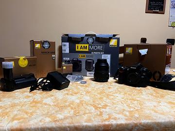 Kit Nikon D90 con obiettivo 18-105, con scatola e tutti accessori originali (tracolla, caricabatterie, paraluce, cavo audio-video, cavo USB, manuale istruzioni, tappi). Due batterie originali, due SD da 16 GB. Battery-pack originale Nikon MB-D80. Tutto tenuto benissimo e perfettamente funzionante. Regalo set filtri GOBE kit ND8 - ND1000 - CPL DA 72 con adattatore 72-67 mm e filtro neutro Kenko.