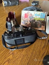 Macchina fotografica Nikon EM funzionante, in perfetto stato e dotata di obiettivo 50mm e flash.