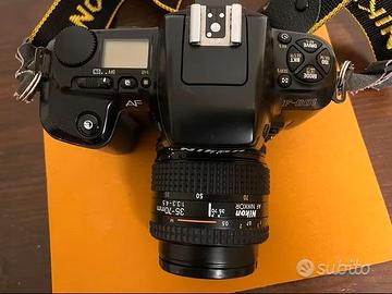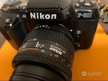 Macchina fotografica Nikon F-601 AF, con obbiettivo AF Nikkor 35-70mm 1:3.3-4.5, con flash incorporato, completo di borsa Nikon, anno 1993, in perfetto stato usata soltanto 6/7 volte. Per info telefonare al 3355247448