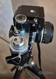 MACCHINA IN BUONE CONDIZIONI ESTETICHE,TEMPI DI SCATTO OK,PHOTOMATIC FUNZIONANTE,AUTOSCATTO OK,CORREDATA DI ATTACCO FLASH NIPPON KOGAKU,OBIETTIVO 50mm f2 ESENTE DA FUNGHI E GRAFFI ALLE LENTI,TRACOLLA E BORSA PER IL TRASPORTO.