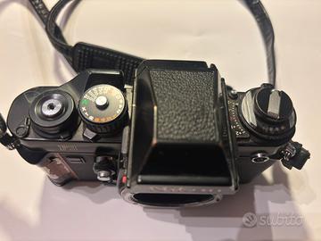 NIKON F3 HP Corpo Black è una fotocamera reflex 35mm a pellicola progettata per il fotografo professionista, ma perfetta anche per l’appassionato che cerca affidabilità meccanica, precisione e stile iconico. Prodotta dal 1980 al 2001, la F3 è un punto di riferimento nella storia della fotografia. È la prima Nikon F a utilizzare un otturatore elettronico al quarzo, garantendo precisione e tempi da 8 secondi a 1/2000, oltre alla posa B. La sigla HP (High Eyepoint) indica una versione con mirino speciale, progettato per offrire una visione completa anche a chi porta gli occhiali, rendendo la composizione più comoda e precisa. Il mirino è intercambiabile, come tutta la gamma dei mirini professionali Nikon. Scatto meccanico e elettronico (usava batterie tipo D357). Manca il rivestimento superficiale sul lato destro del corpo (vedi foto). ZOOM NIKKOR 35-70 mm. FLASH NIKON SPOTLIGHT.