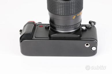 La Nikon F-301 fu presentata come il primo apparecchio di una serie interamente nuova, di fatto è la prima Nikon dotata di motore di trascinamento integrato (2,5 fotogrammi al secondo). Alla sua uscita destò dubbi di affidabilità, proprio per il motore integrato, ma subito fu riconosciuta come una vera Nikon. Le sue caratteristiche includono il caricamento film automatizzato con impostazione automatica della sensibilità tramite decodifica DX (escludibile), la ripresa in sequenza. Le modalità di esposizione automatica programmata, normale e con tempi rapidi, o a priorità dei diaframmi, di controllo manuale con display a LED nel mirino, la compensazione dell'esposizione, il blocco AE, l'avvisatore acustico escludibile, la finestrella sul dorso per la verifica del caricatore, una spia LED d'avanzamento corretto, uno schermo di messa a fuoco particolarmente brillante, l'autoscatto con spia LED, il flash TTL programmato e l'attacco per flessibile elettrico. La fotocamera è priva del pulsante di previsualizzazione delle profondità di campo e non consente l'intercambio degli schermi di messa a fuoco. A corredo obbiettivo Panagor AI 28-70/3.5-4.5 e Vititar AI 70-210/4.5-5.6, con i loro tappi frontali. Prodotto visibile presso il punto vendita 2 Emme Foto Padova, Orari 9.15-12.30 e 15.00-19.00 Chiusi Domenica e Lunedì mattina.