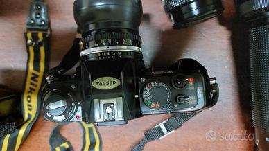 Macchina usata poco e tenuta benissimo,non presenta alcun graffio o altri segni di usura,ancora perfettamente funzionante in tutto,ha funzioni Automatica,Program e Program hi,Iso fino a 3200 e tempi fino a 1/2000. Completa di obiettivo Nikon 50mm/f1.8 + grandangolare Vivitar 28mm/f2.8 + teleobiettivo Tamron 60-300/f3,8-f5,4 con funzione macro e custodia rigida originale. La macchina ha tracolla , custodia rigida e manuale originali Nikon. La vendo al miglior offerente poichè non la uso più.