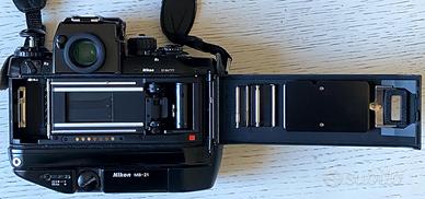 Nikon F4s professionale a pellicola con motore MB-21 da 5,7 Fps, pentaprisma mirino intercambiabile DA-20 e sensore DX. F4s (S = Sport/Speed).