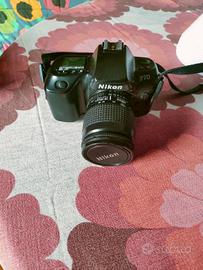 Nikon F70 analogica con obiettivo Nikon AF 28-80mm f/3.5-5.6D unico difetto con rivestimento impugnatura appiccicoso causa "età"
