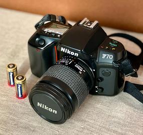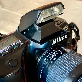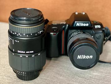 Nikon F70 con zoom originale 28-80 AF + Zoom 70-30 AF Sigma Apocromatico. Tutto perfettamente funzionante con obbiettivi autofocus, borsa e manuale originale.