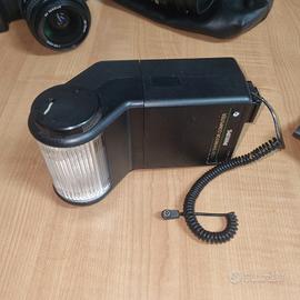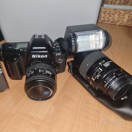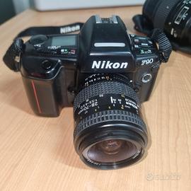 La Nikon F90 (1992) è una reflex autofocus 35mm professionale/semi-pro robusta e veloce, nota per l'autofocus avanzato, il motore integrato e la misurazione Matrix 3D. Offre tempi da 30s a 1/8000s, sincronizzazione flash a 1/250s e compatibilità con obiettivi AF-D, ideale per un uso professionale. Nital +2 Caratteristiche Principali e Tecniche: Autofocus e Esposizione: Sistema AF evoluto con rilevamento "wide area" e spot, in grado di tracciare soggetti in movimento. Esposimetro Matrix a 8 zone (3D con obiettivi AF-D). Otturatore e Velocità: Tenda sul piano focale con tempi da 30 secondi a 1/8000 di secondo, più posa B. Sincro flash 1/250 sec (fino a 1/4000 con funzioni FP). Corpo e Alimentazione: Peso di circa 755-775 grammi. Motore di trascinamento pellicola integrato. Alimentata da 4 batterie AA. Versioni: Disponibile come F90 standard, F90D (con dorso datario) e F90S (con dorso multifunzione). La versione migliorata Nikon F90X (1994) ha introdotto un AF più veloce e una maggiore silenziosità.