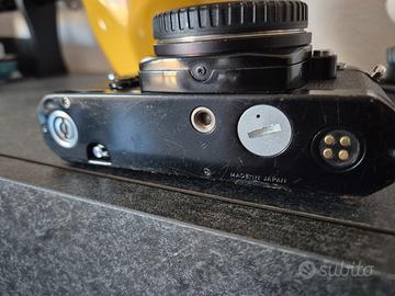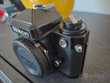 Vendo fotocamera analogica Nikon FE in versione nera (Black Body). Si tratta di una delle reflex più iconiche e affidabili di Nikon, dotata di attacco Nikon F-mount (compatibile con una vastissima gamma di obiettivi AI e successivi). Condizioni dell'oggetto: Estetica: Segni di usura visibili (graffi e sverniciature sugli spigoli) che ne testimoniano l'uso autentico nel tempo. Non presenta ammaccature gravi. Meccanica/Elettronica: La macchina viene venduta come DA REVISIONARE. Al momento non sembra rispondere correttamente ai comandi (probabile necessità di cambio batterie e pulizia contatti). Incluso: Tappo corpo originale Nikon. Ottima per appassionati di fotografia analogica che sanno metterci mano o come pezzo da collezione/arredamento.