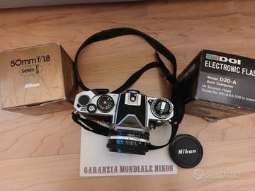 Nikon FE obbiettivo 50mm f/1.8 con DOI D20-A flash , funziona solo M90 no multiscatto, APPENA revisionata da fotografo , originale.