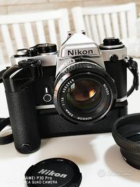 Nikon fe con 50mm1.4 e md 12 + filtro uv e paraluce in buone condizioni pari al nuovo