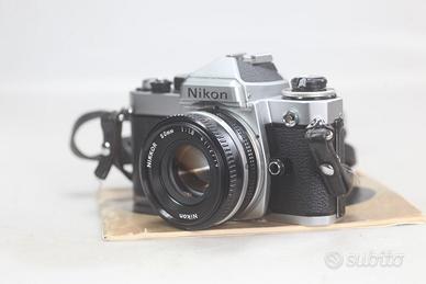 Splendida Nikon FE con obbiettivo Nikkor 59 mm F/1.8, condizioni ottime , perfettamente funazionante, completa di cinghia e libretto d'istruzionei