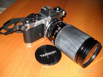 Vendo macchina fotografica reflex Nikon Fe2 con obiettivo Tamron SP 35-210 f.3,5 e custodia Report in cordura. Il tutto è completo di scatole e custodie originali ed è stato usato veramente poco e con molta cura