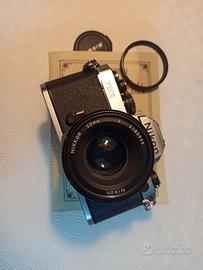 Corpo macchina con obiettivo Nikkor 50mm 1:1.8 + skilight a protezione lente frontale. Perfettamente funzionante