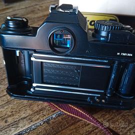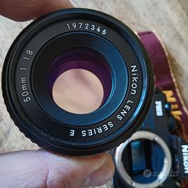Impeccabile Nikon FM2n con il suo mirabolante otturatore in titanio a nido d'ape. Corredata del suo 50mm f/1.8 Ai Serie E d'ordinanza, Tappo anteriore dell'obiettivo, tracolla, libretto di istruzioni e scatola originali. Macchina fotografica perfetta e funzionante senza la minima incertezza. Contatti elettrici puliti e attivi, esposimetro precisissimo. Da usare ed amare senza indugi.