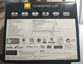 Fotocamera digitale Nikon vintage color argento perfettamente funzionante, completa di scatola,incluso scheda di memoria.