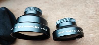 Vendo obbiettivi Originali Nikon TC-E2 2X Tele Converter con custodia, WC-E24 0.66x Wide converter, entrambi perfetti pari al nuovo
