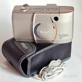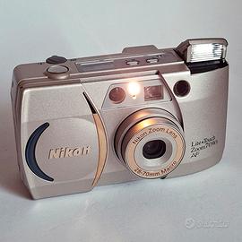 Da personale collezione splendida Nikon Lite•Touch Zoom 70Ws AF, una delle più apprezzate della serie Nikon per la sua compattezza e la qualità dell'ottica. Obiettivo: Nikon Zoom 28-70mm Macro (ottimo per panorami e primi piani). Design: Ultra compatta, sta comodamente in tasca. Funzioni: Flash pop-up automatico con riduzione occhi rossi, autofocus preciso e caricamento/riavvolgimento automatico della pellicola. Estetica: Eccellenti condizioni, come visibile in foto. Il corpo macchina è ben conservato. Funzionamento: 0Testata e perfettamente funzionante. Plus: Completa di scatola originale istruzioni custodia e cinturino. Un pezzo ideale anche per collezionisti. Tipo pellicola: 35mm (standard) Flash integrato Autofocus (AF) Alimentazione: 1 batteria CR123 (non inclusa) Spedizione rapida e imballaggio super protettivo per garantire l'integrità della scatola originale. NB "Il prezzo proposto tiene conto delle condizioni estetiche e funzionali eccellenti e della rarità della confezione originale completa "